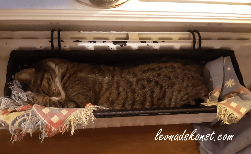 hon är otroligt trött det lilla livet, eller det verkar katter vara över lag. hon sover både här och där, men hon har ett favoritställe och när hon ligger där tänker jag på en bröddeg som ligger på jäsning i en brödform.