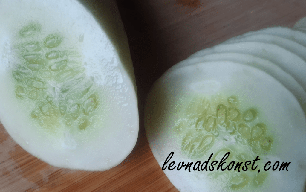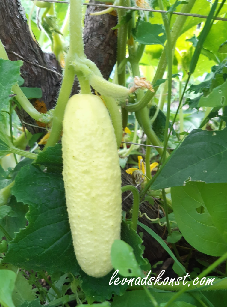 jag odlar gurka, squash och pumpor tätt på friland vilket gör att risken, eller möjligheten, det beror ju lite på hur man ser på det, hur som helst: då det föreligger en stor chans att de korspollineras köper jag nya fröer varje år och när jag satt där och scrollade hos en av mina favoritfröfirmor så fick jag för mej att jag skulle odla en grön gurka oxå, det har jag inte gjort på många år så det kändes lixom som att det var hög tid.