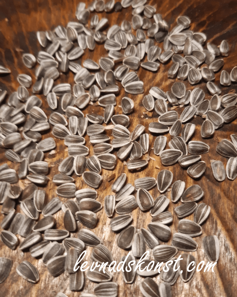 jag börjar med att pilla loss ett gäng med solroskärnor, det kan vara värt att förbereda fler än man behöver så kanske man slipper det momentet nästa gång.