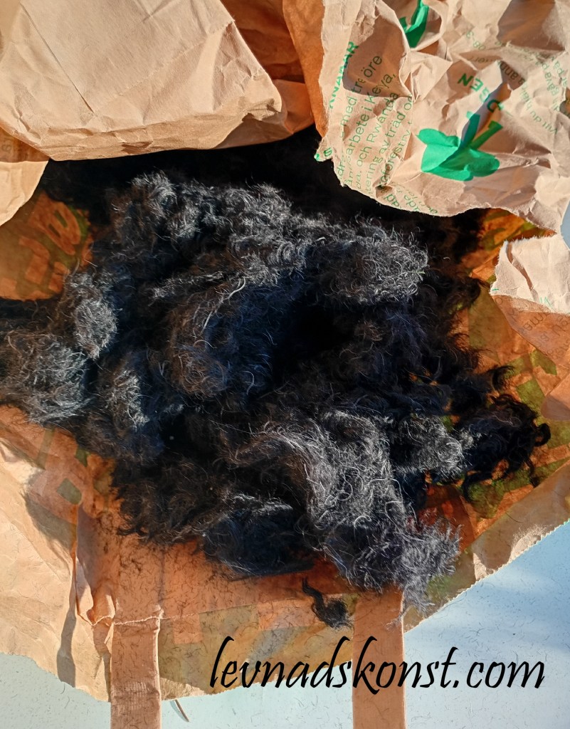 Jag har en vän, L, som har djur. På deras gård bor katter, hundar, höns och hästar. Jag gör allt vad jag kan tänka på för att få in så stor biologisk mångfald som bara möjligt i den här villaträdgården och ett huvudfokus för mej, just nu, är småfåglarna. Jag minns hur fåglarna brukade fodra sina bon med päls från min gamla häst som inte finns längre så jag frågade L om hon skulle vilja samla ihop päls åt mej från sina hästar och/eller hundar och då hade jag sån tur att det var dax för ett besök hos hundfrisören och vips hade jag fantastisk päls från en pudel i en påse på min uteplats och jag kunde knappt bärga mej – ville fixa med det direkt!