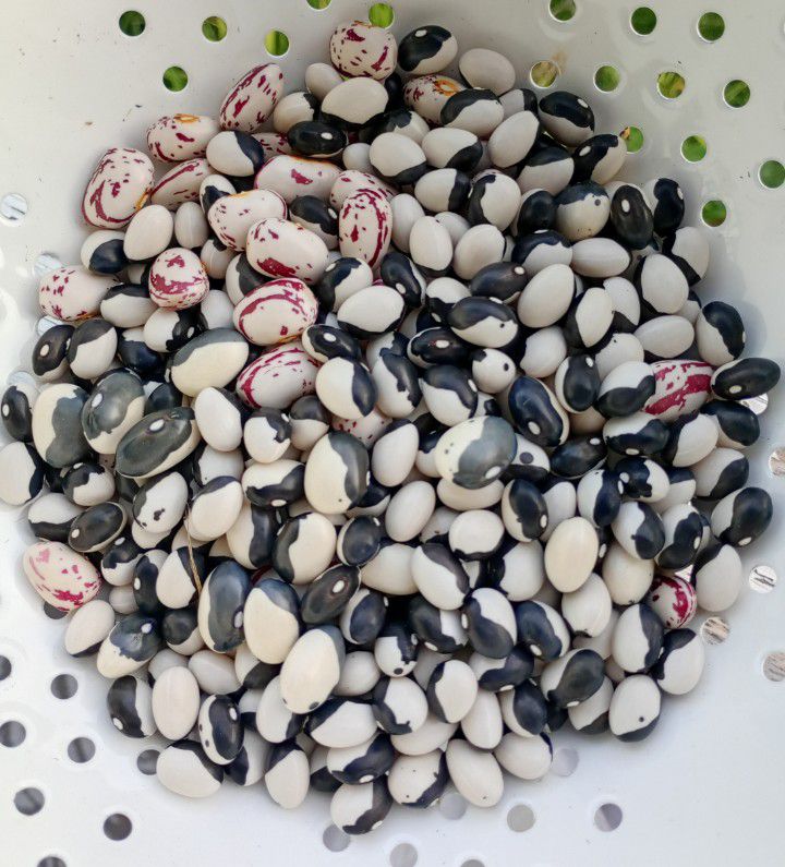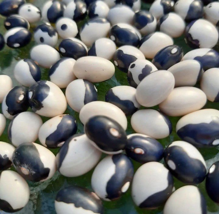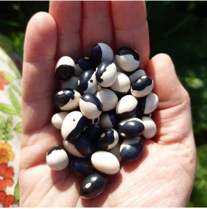 Jag äter inte kött och som ett led i detta försöker jag odla så stor del av mitt protein som jag bara kan. En del år lyckas jag bra, andra mindre bra och nu när jag som bäst planerar odlingen inför 2026 kommer jag lägga in nya land för bönor och jag ska utöka både plantantal och sorter. Visst utsäde har jag få i antal så de blir enbart en såomgång, men vissa har jag mycket utsäde av så där blir det inget problem att ha två såomgångar & yin & yang-bönan är en av de sistnämnda. Det här är en otroligt vacker böna som jag har odlat i många år, det är en spritböna, den är lågväxande cirka 40 cm hög och det blir en handfull bönor i varje skida. Jag torkar mina bönor och använder i maten och om jag tillagar dom varsamt behåller de sitt utseende, annars bleknar de & blir helt vita. Yin och Yang bönan innehåller 26gr protein per 100 gr.